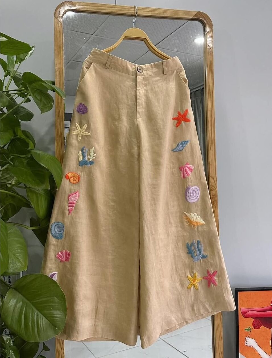 Beautifully embroidered pants featuring intricate patterns and delicate threadwork for a sophisticated look.