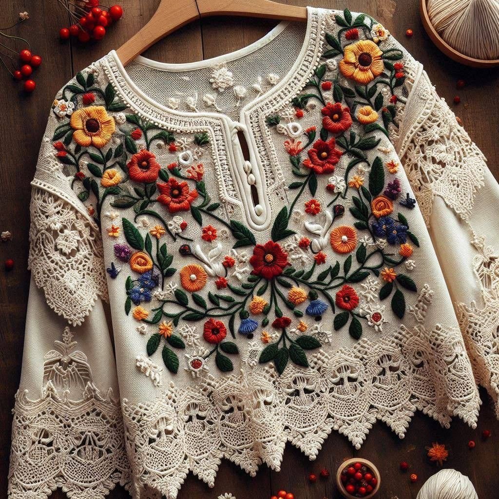 Elegant embroidered sleeves featuring intricate threadwork and delicate patterns for a refined touch.