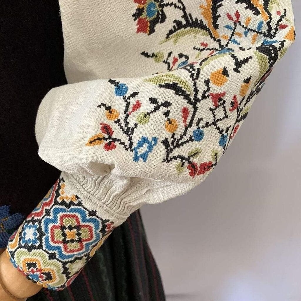 Elegant embroidered sleeves featuring intricate threadwork and delicate patterns for a refined touch.